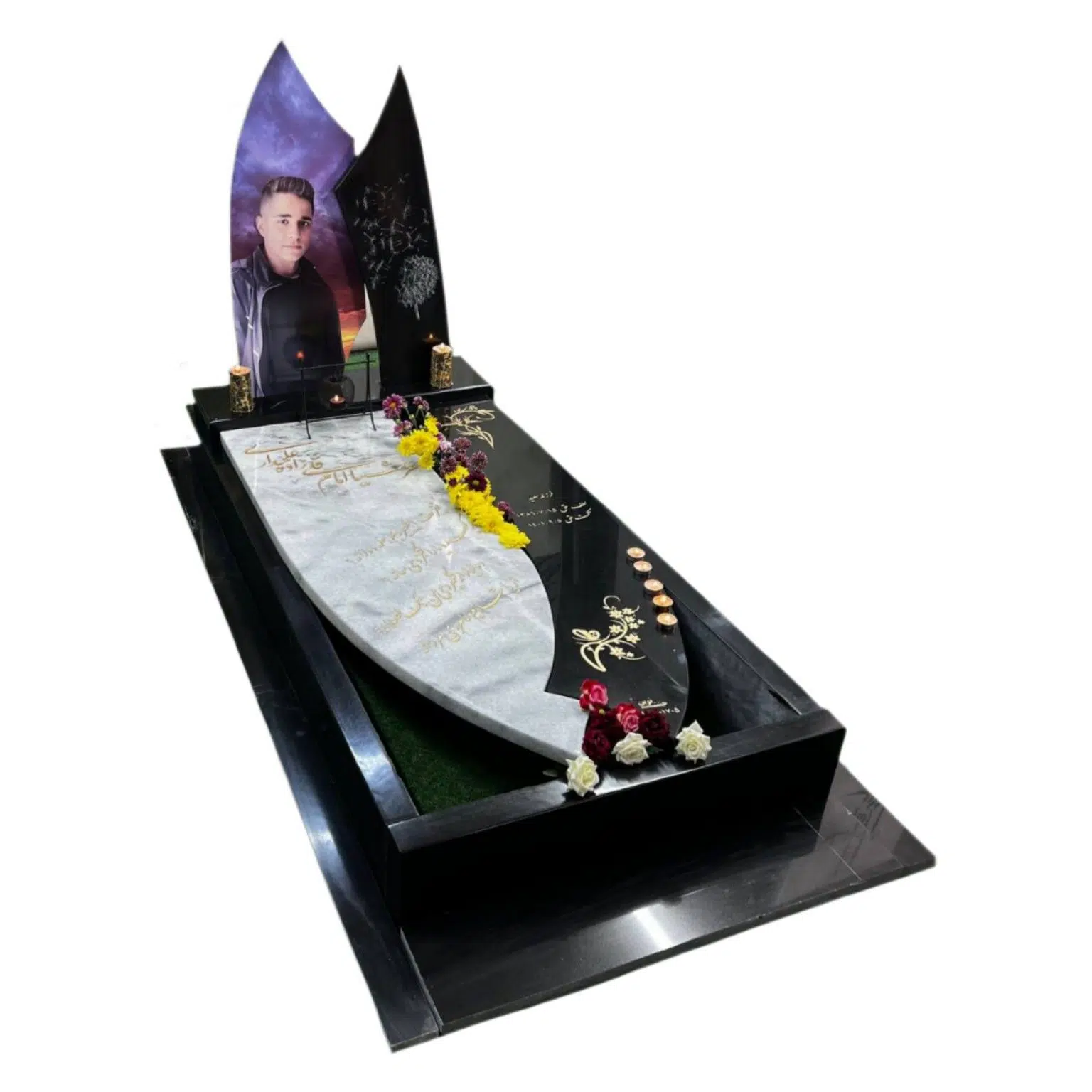 جنس سنگ قبر موجود در تصویر: سنگ قبر ترکیبی گرانیت مشکی و کریستال